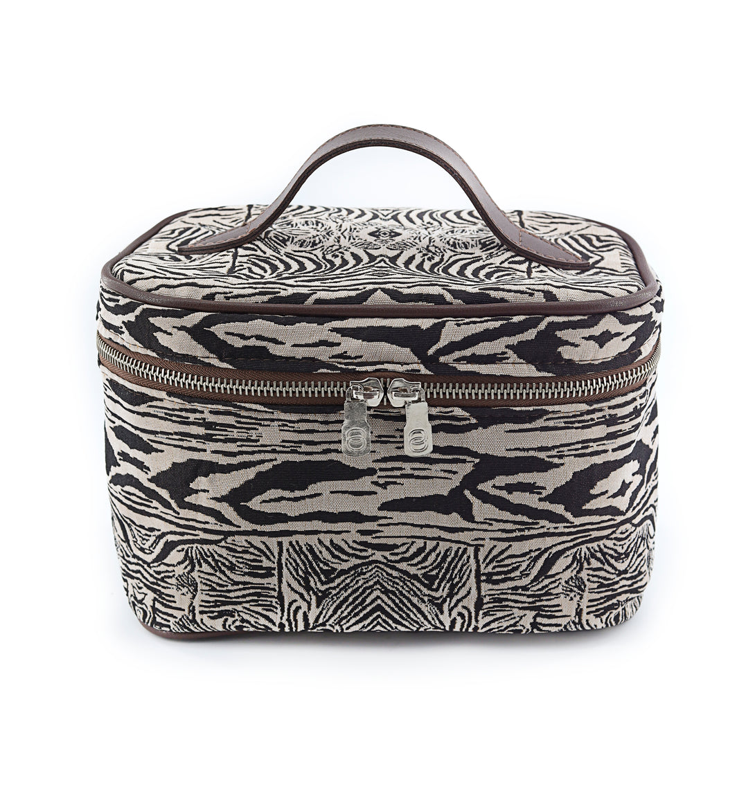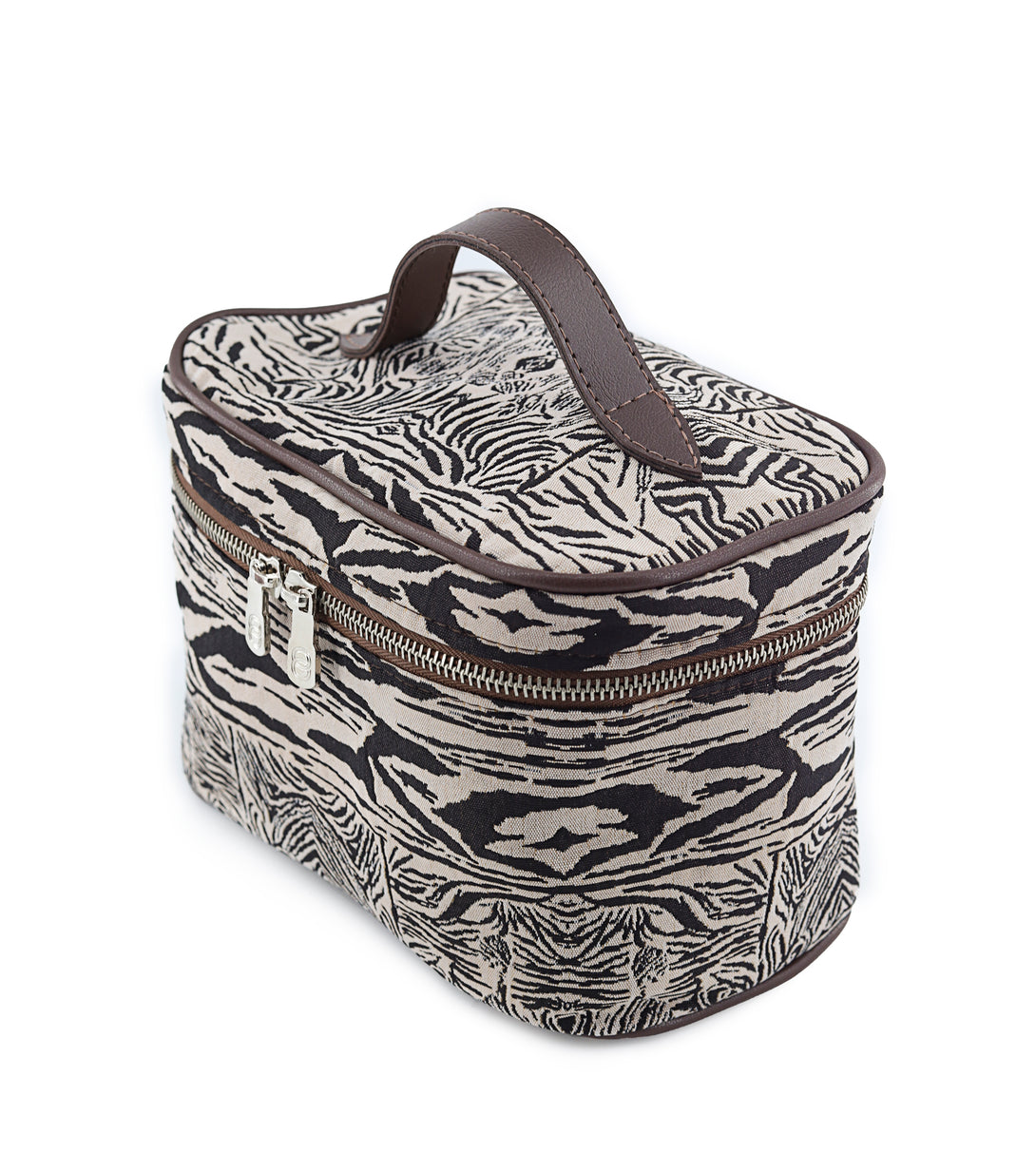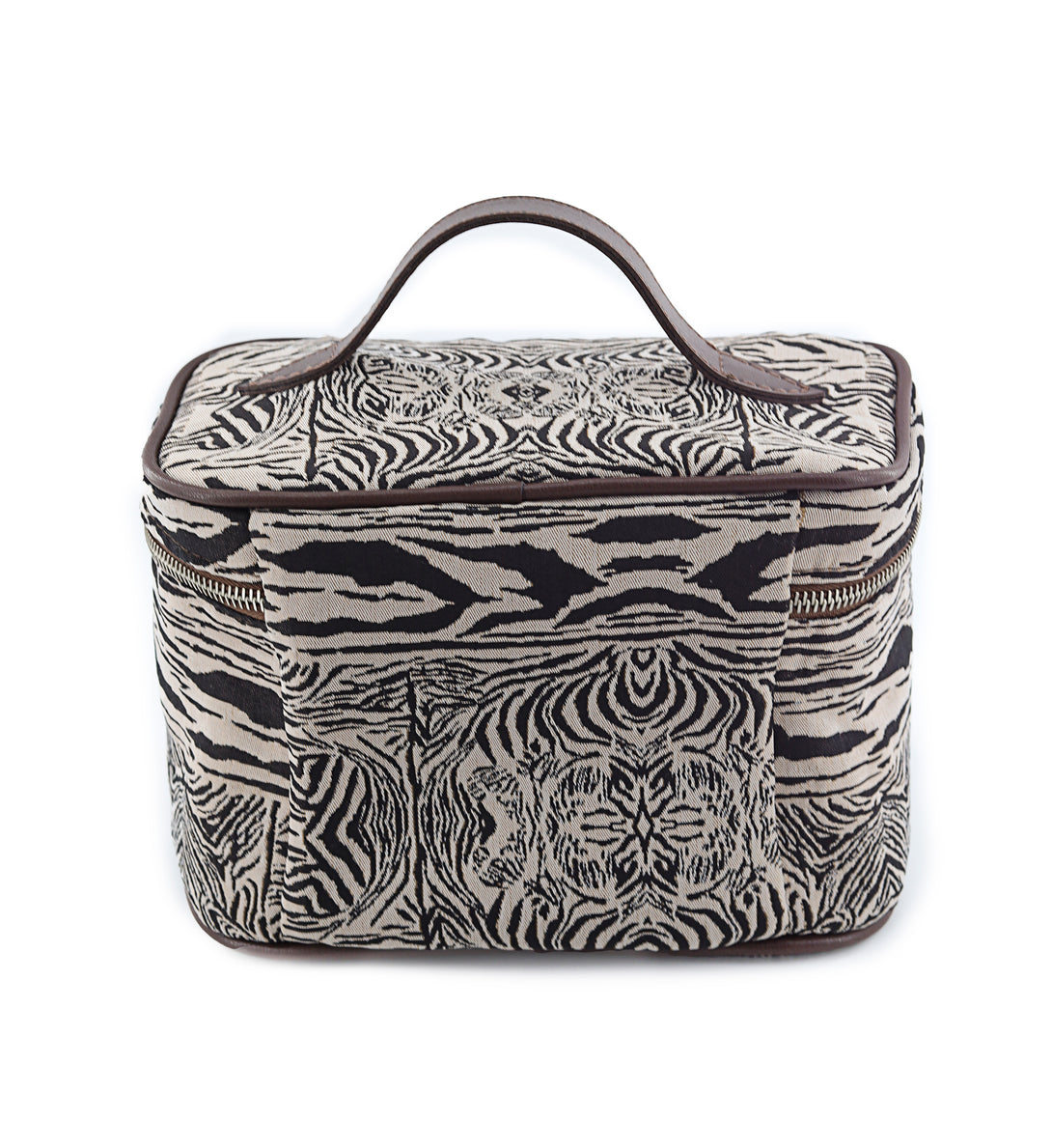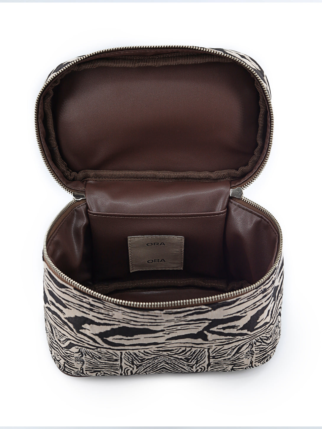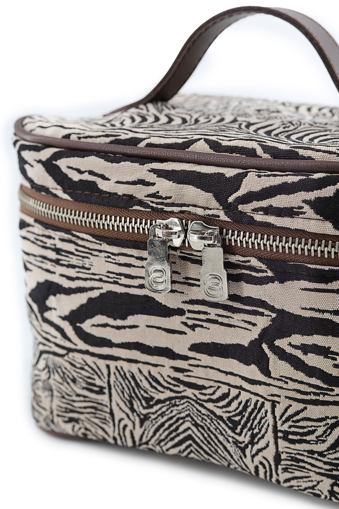 A refined medium vanity case crafted for elegant, everyday organization. Its structured silhouette is wrapped in our striking woven pattern and finished with PU synthetic lining, a nickel metal zipper, a luxury puller, and reinforced poly-nylon edging for durability and elevated appeal.