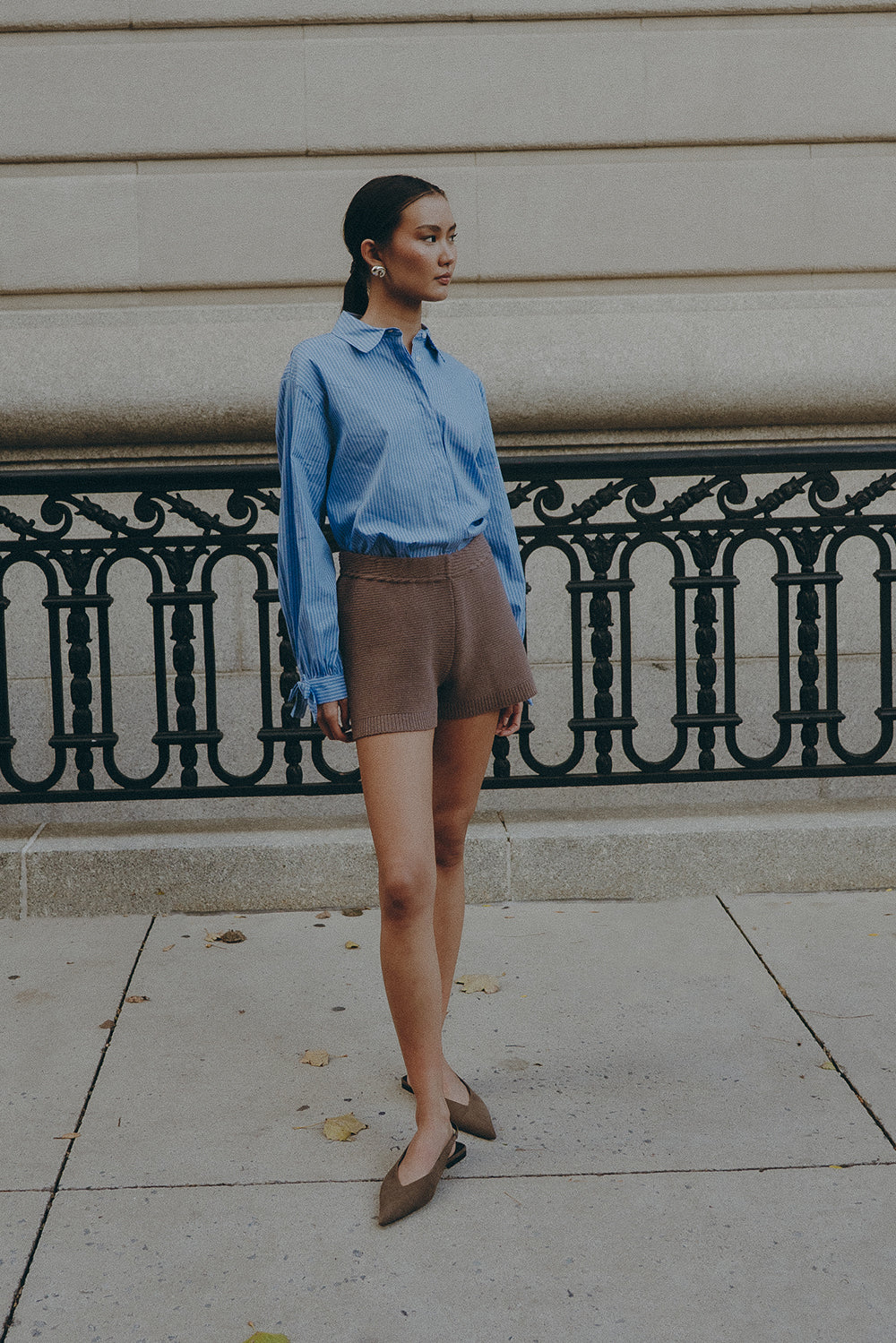 Versatile knit shorts that move seamlessly from casual to elevated. The refined rib texture adds quiet elegance, while the flattering fit contours the body with ease. Finished with two back pockets that bring structure and a modern, functional touch.