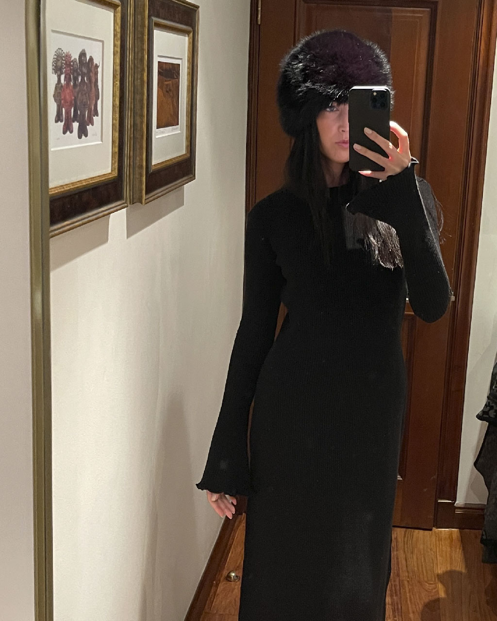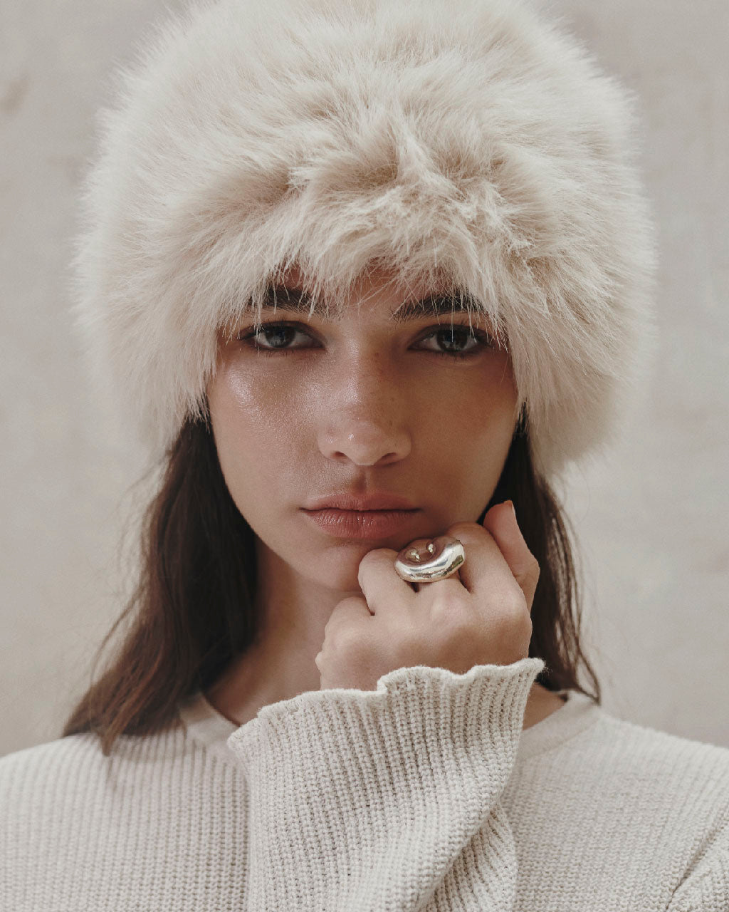 Fur effect hat.
